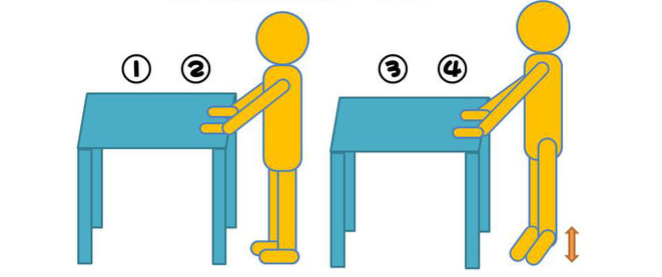 ①安定した机やテーブルに手をつきます